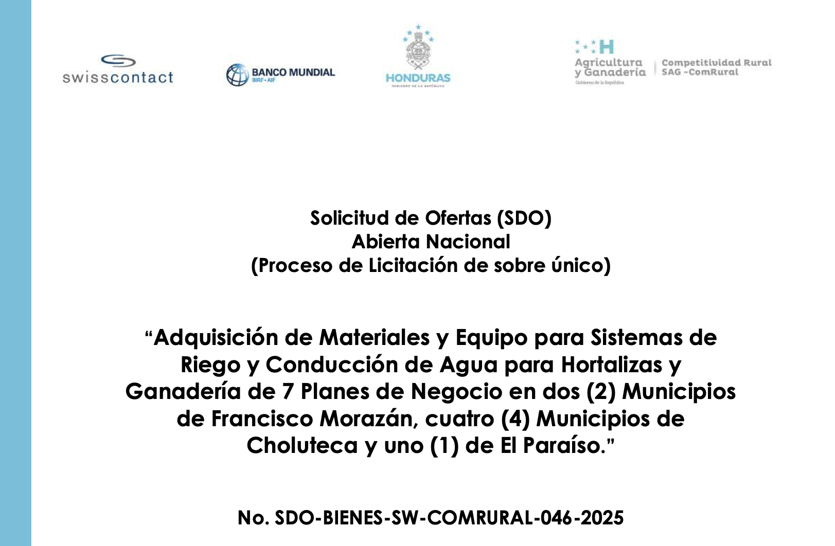 Adquisición de Materiales y Equipo para Sistemas de Riego y Conducción de Agua