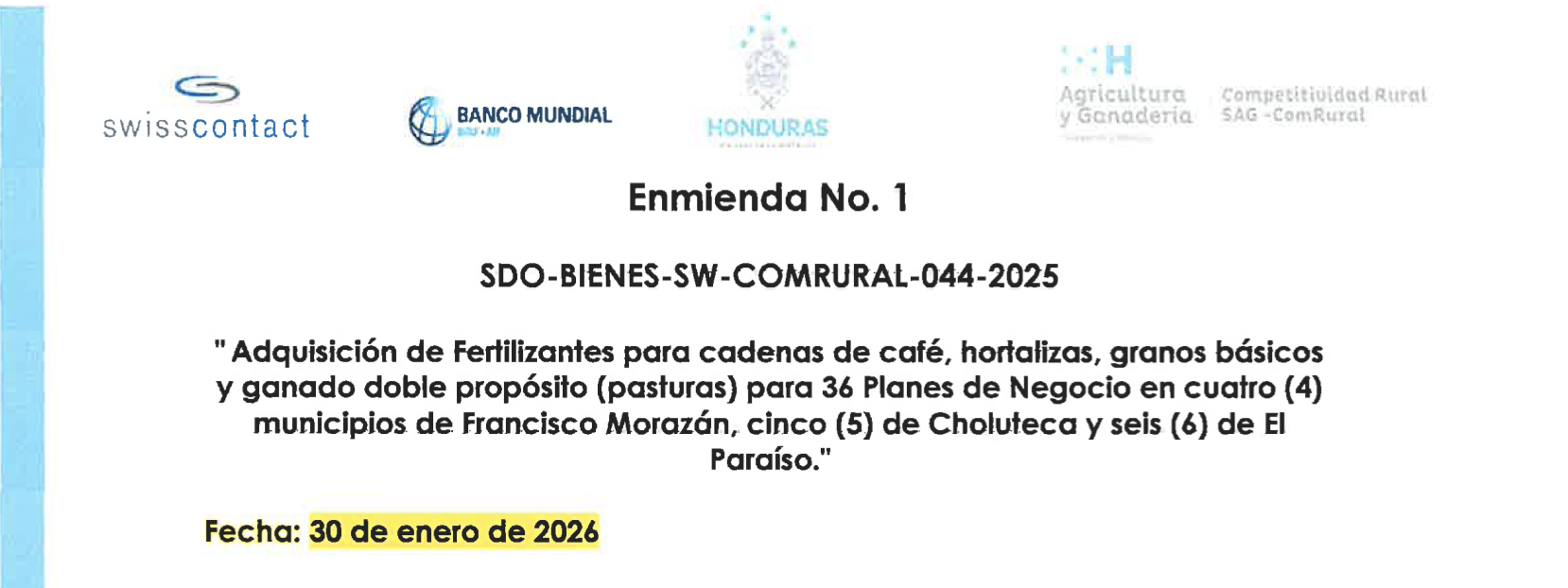 Enmienda No.1 SDO-SW-COMRURAL-044-2025 - Fertilizantes
