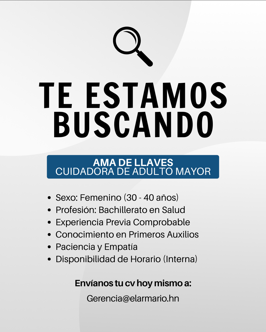 Enviar CV actualizado al correo Gerencia@elarmario.hn.