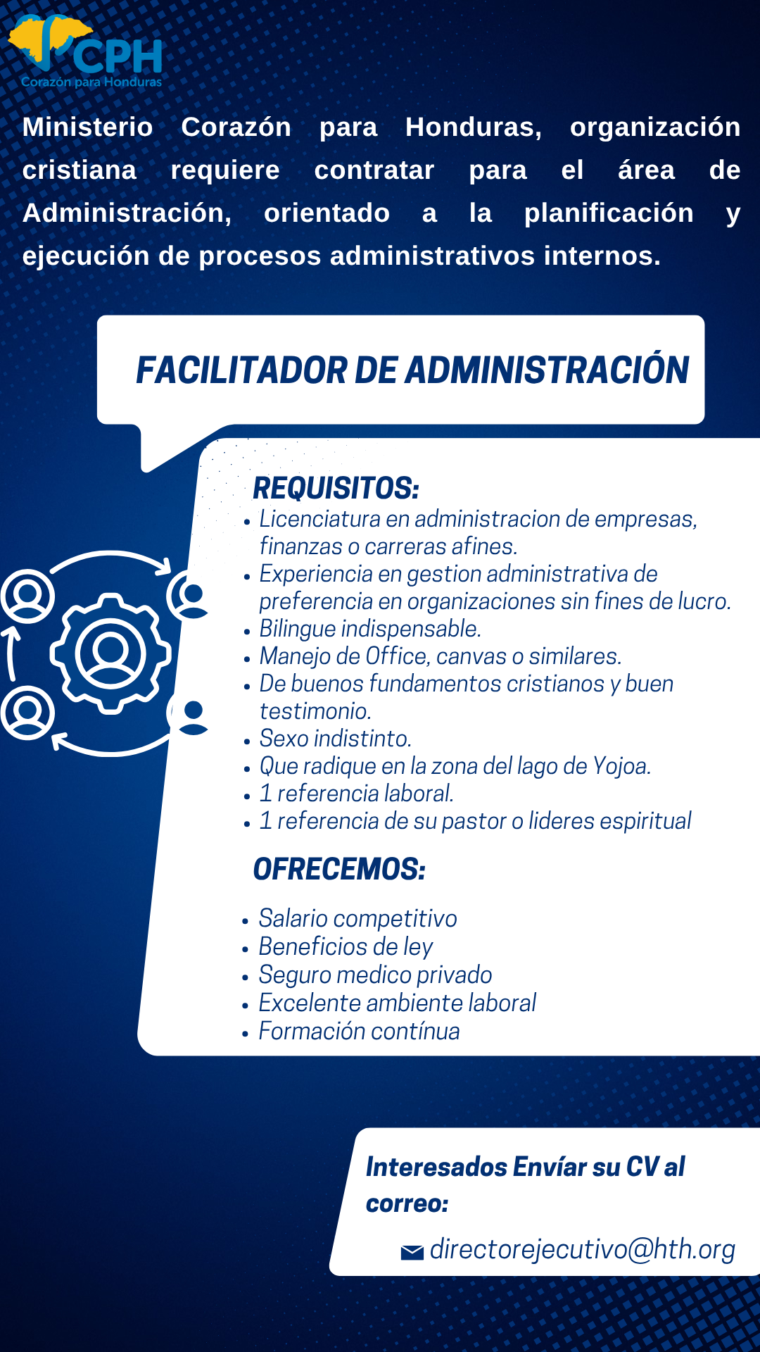 El Facilitador de Administración es responsable de apoyar y velar por el cumplimiento de los procesos administrativos de la organización, contribuyendo a la eficiencia institucional mediante la gestión adecuada de recursos, el fortalecimiento de relaciones institucionales, la elaboración de reportes, el seguimiento presupuestario y el apoyo en la gestión de fondos y promoción de programas.